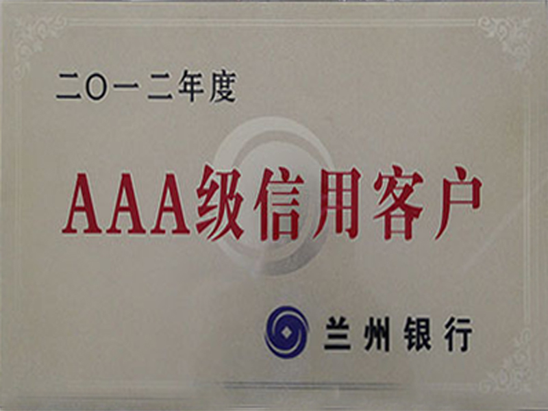 2012年度蘭州銀行AAA級(jí)信用客戶