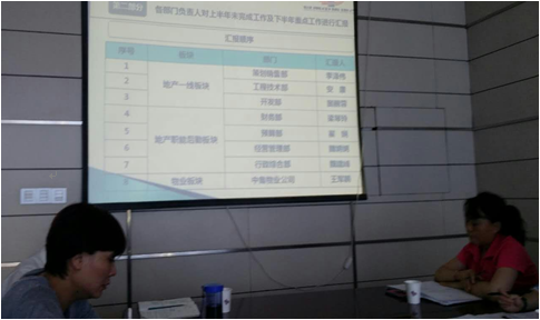 周啟濤總經(jīng)理結(jié)合房地產(chǎn)公司、物業(yè)公司2015年度上半年運營管理情況,對上半年工作進(jìn)行總結(jié)點評。并對公司存在的問題,尤其是戰(zhàn)略執(zhí)行、員工綜合素質(zhì)提升、創(chuàng)新經(jīng)營管理、物業(yè)服務(wù)品牌建設(shè)提出了具體要求,并對下半年重點工作進(jìn)行了安排部署和新項目拓展、啟動進(jìn)行了詳盡的規(guī)劃。