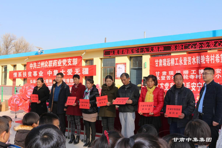 為踐行黨的十九大精神,充分發(fā)揚(yáng)企業(yè)社會(huì)擔(dān)當(dāng)。2017年12月1日下午,甘肅中集實(shí)業(yè)集團(tuán)有限公司攜手安寧區(qū)非公委及安寧區(qū)五家非公企業(yè),前往永登縣苦水鎮(zhèn)轉(zhuǎn)輪寺村開(kāi)展“扶貧幫困 我們?cè)诼飞稀贝壬凭栀?zèng)活動(dòng)。