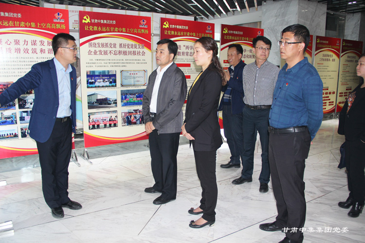 2017年9月27日下午,蘭州市委常委、組織部部長(zhǎng)李宏亞一行在區(qū)委常委、組織部部長(zhǎng)賈向紅、副部長(zhǎng)楊顯輝、安寧區(qū)非公黨委副書記何健興、劉家堡街道負(fù)責(zé)人陪同下蒞臨公司調(diào)研指導(dǎo)黨建工作,集團(tuán)公司黨委副書記、董事長(zhǎng)助理董廣科、黨委委員魏建峰、安 康陪同調(diào)研。