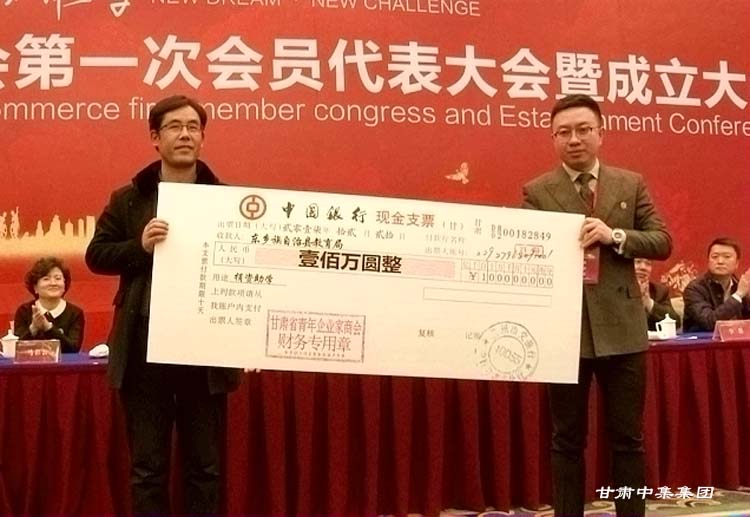 同時,甘肅省青年企業(yè)家商會副會長、甘肅中集實業(yè)集團(tuán)董事長周啟濤代表甘肅省青年企業(yè)家商會現(xiàn)場向東鄉(xiāng)族自治縣捐贈100萬元,用于建造東鄉(xiāng)縣石家溝村幼兒園。