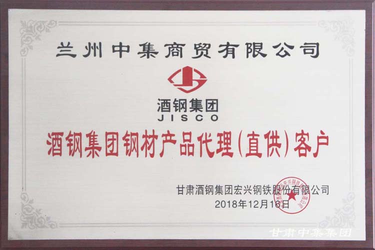 2018年12月12日,由酒鋼集團(tuán)宏興鋼鐵股份有限公司組織的“2019年酒鋼碳鋼產(chǎn)品推介暨客戶座談會”及“2018年度全國百家金牌供應(yīng)商頒獎典禮”在蘭州皇冠假日酒店召開。甘肅中集實業(yè)集團(tuán)有限公司及下屬子公司蘭州中集商貿(mào)有限公司、天水中集商貿(mào)有限公司榮獲“酒鋼集團(tuán)鋼鐵產(chǎn)品代理(直供)客戶”及“2018年度金牌代理商”殊榮。