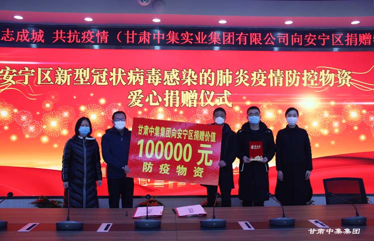 2020年2月7日上午,受甘肅中集集團(tuán)黨委書記、董事長(zhǎng)周啟濤委托,甘肅中集集團(tuán)黨委副書記董廣科、黨委委員魏建峰一行前往蘭州市安寧區(qū)人民政府向安寧區(qū)新型冠狀病毒感染的肺炎疫情聯(lián)防聯(lián)控工作領(lǐng)導(dǎo)小組捐贈(zèng)10萬元防疫物資,為當(dāng)前疫情聯(lián)防聯(lián)控、群防群控工作貢獻(xiàn)力量。