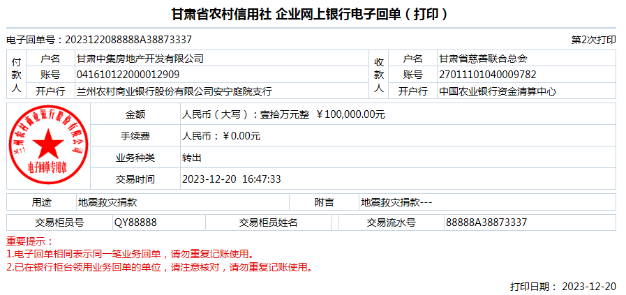 甘肅中集集團(tuán)向臨夏積石山地震災(zāi)區(qū)捐款10萬(wàn)元