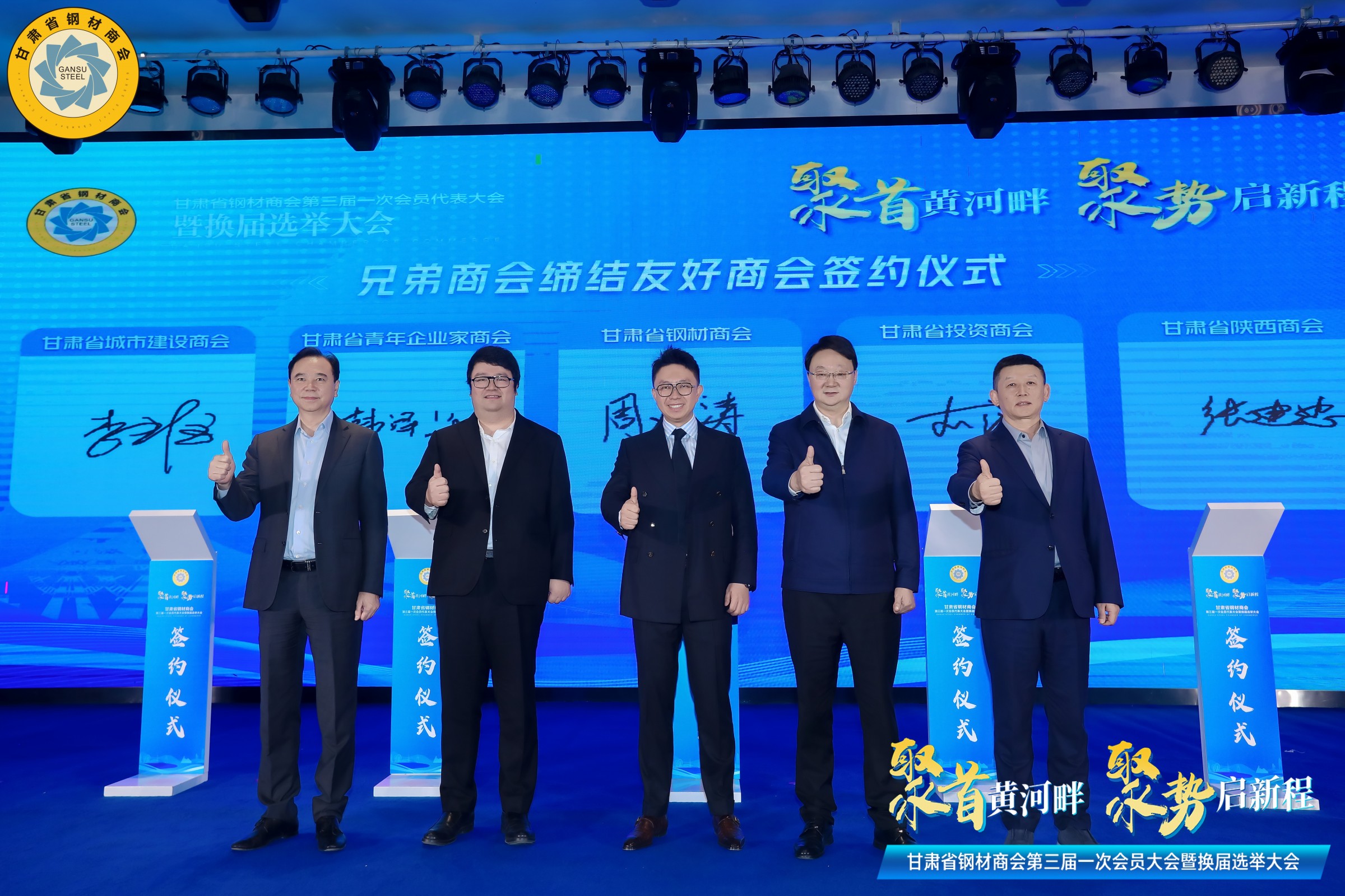 在合作交流環(huán)節(jié),甘肅省鋼材商會分別與甘肅省陜西商會、甘肅省城市建設(shè)商會、甘肅省青年企業(yè)家商會、甘肅省投資商會舉行友好商會簽約儀式,并分別與上海鋼聯(lián)電子商務(wù)有限公司(我的鋼鐵網(wǎng))達成戰(zhàn)略合作協(xié)議,并與蘭州銀行成功簽訂50億元授信協(xié)議,為甘肅省鋼材商會及會員發(fā)展提供資金、平臺、戰(zhàn)略合作的多方支持。