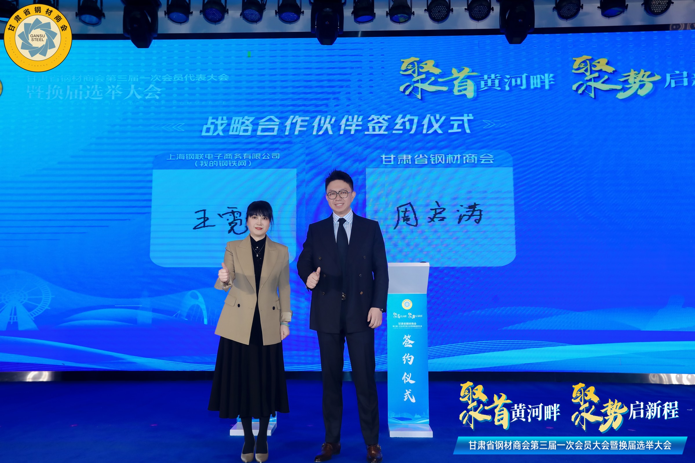 在合作交流環(huán)節(jié),甘肅省鋼材商會分別與甘肅省陜西商會、甘肅省城市建設(shè)商會、甘肅省青年企業(yè)家商會、甘肅省投資商會舉行友好商會簽約儀式,并分別與上海鋼聯(lián)電子商務(wù)有限公司(我的鋼鐵網(wǎng))達成戰(zhàn)略合作協(xié)議,并與蘭州銀行成功簽訂50億元授信協(xié)議,為甘肅省鋼材商會及會員發(fā)展提供資金、平臺、戰(zhàn)略合作的多方支持。