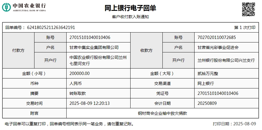 災(zāi)情發(fā)生后,甘肅中集集團(tuán)迅速啟動(dòng)應(yīng)急響應(yīng)機(jī)制,通過甘肅省光彩事業(yè)促進(jìn)會(huì)捐贈(zèng)20萬元,助力榆中縣災(zāi)害救援及災(zāi)后重建工作,幫助災(zāi)區(qū)早日恢復(fù)生產(chǎn)生活秩序。